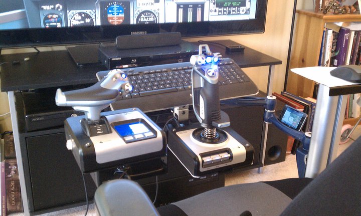when you sit in the chair, you pull both joystick and throttle in towards you. And they are fully adjustable.