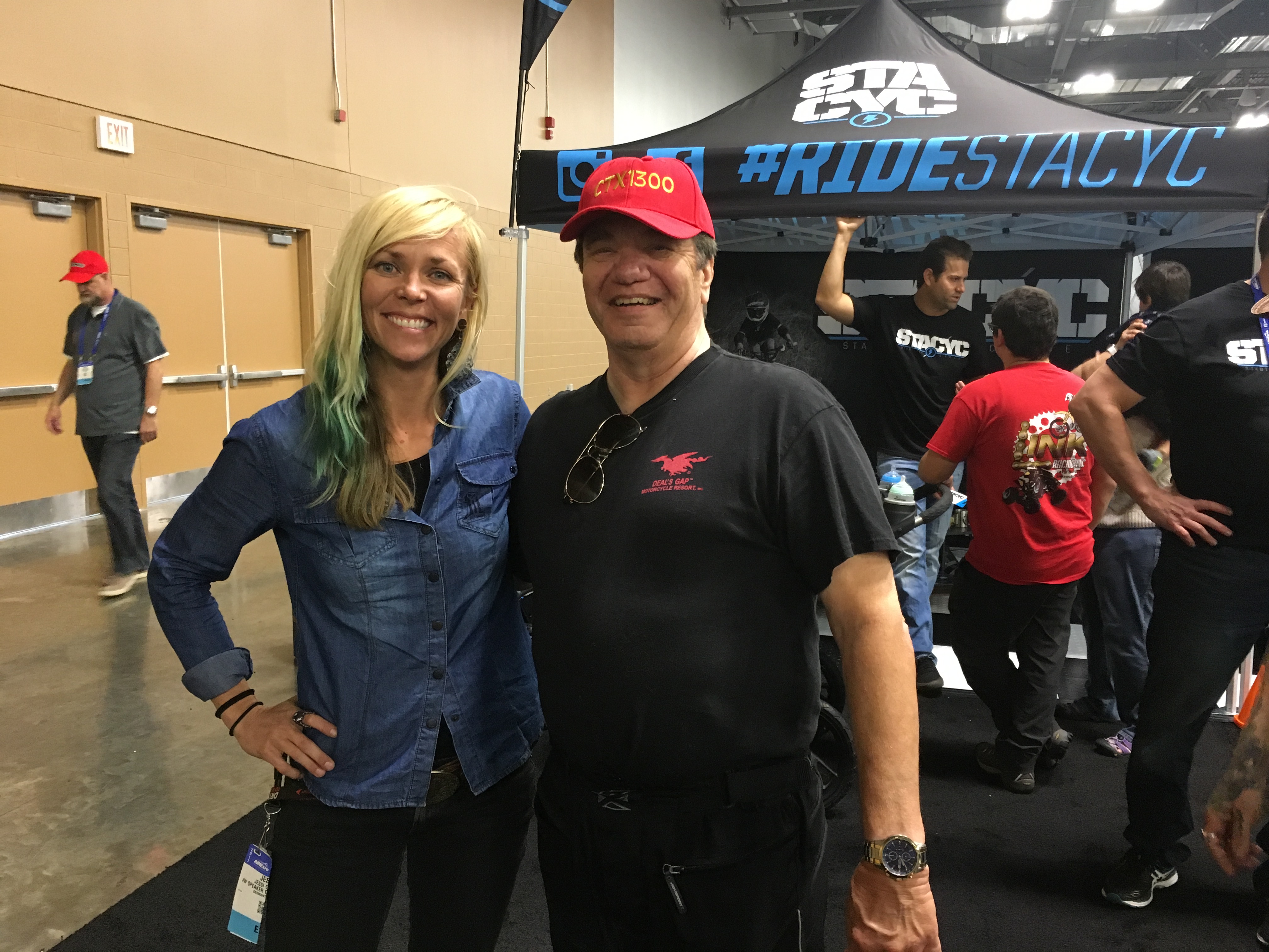 While at a large motorcycle expo here in Columbus, Ohio look who I ran into! For those that are gear heads and watch the Velocity Channel know who this is. I would have never believed I would ever meet her. I caught up to her while she was trying to do wheelies on electric mini bike motorcycle. Typical Jesse. She is currently pursuing her racing career riding motorcycles in induros type racing out in the desserts.