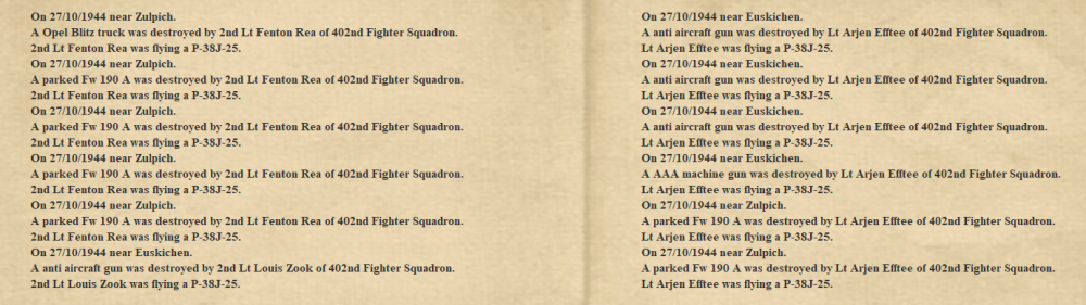 This is a record haul of ground targets destroyed for the Group in single mission so damn fine work 402nd, keep it up!